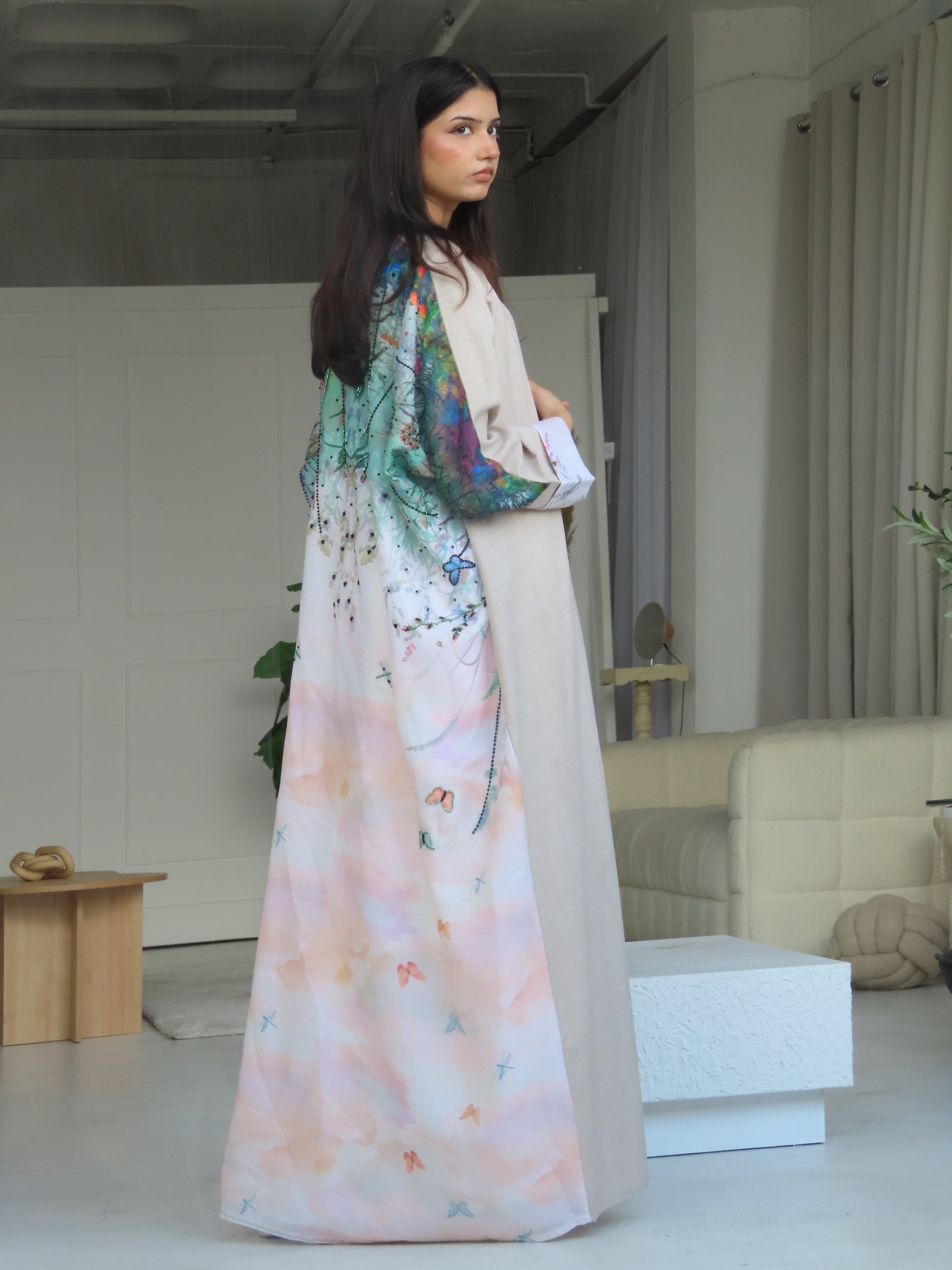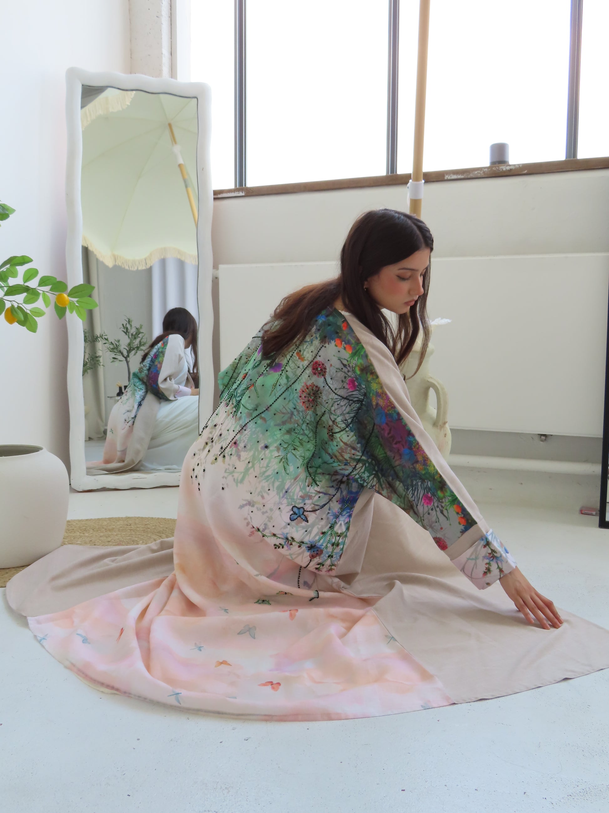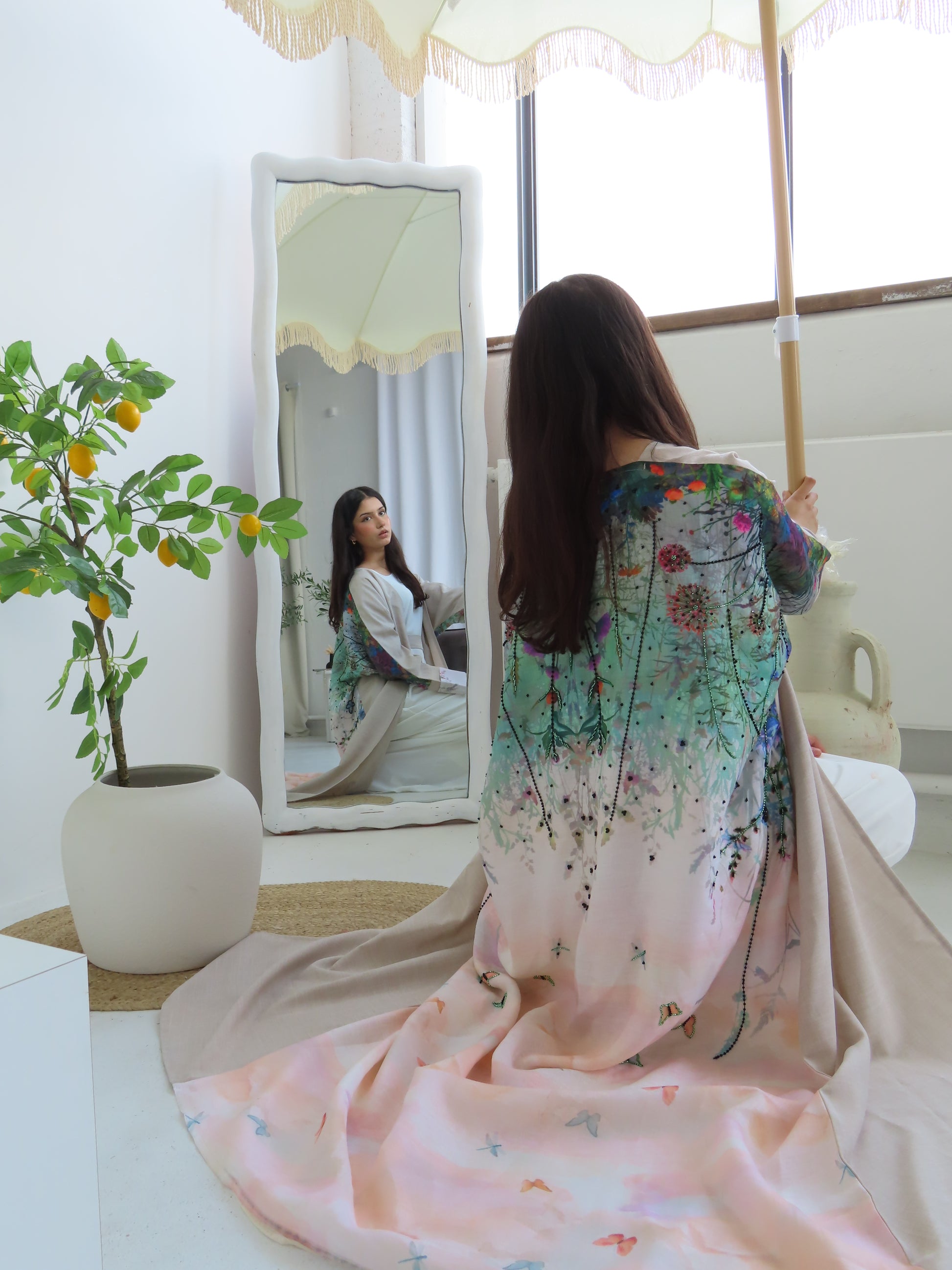 Effortless elegance in watercolor tones, a 3-piece set where art meets modesty. Soft hues and delicate butterfly details come together for timeless style.