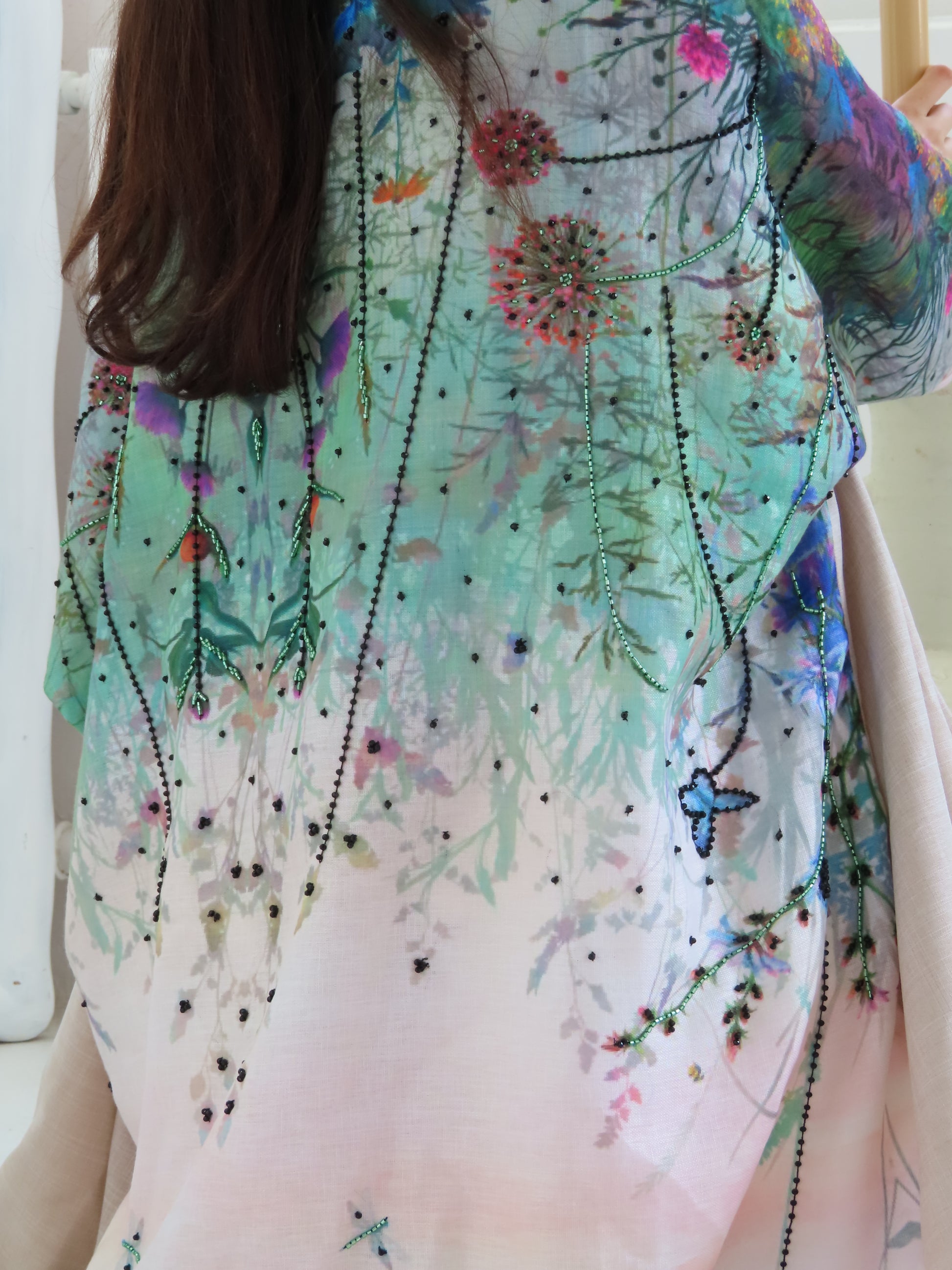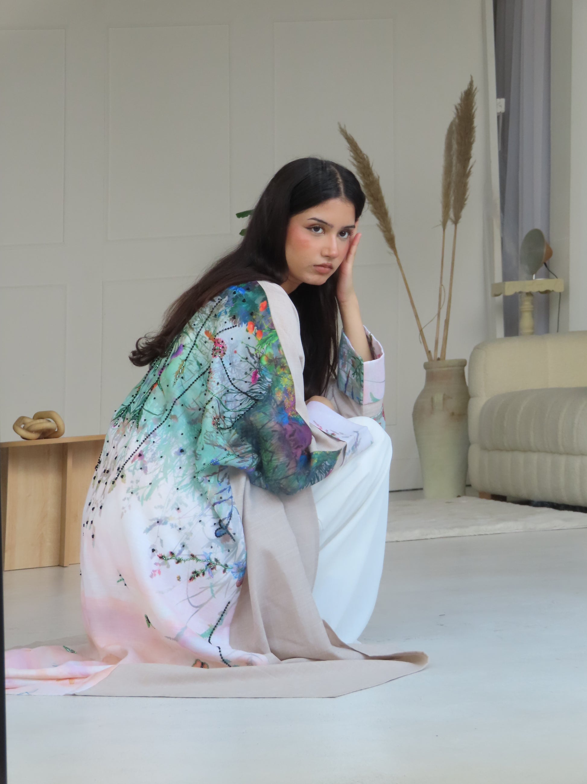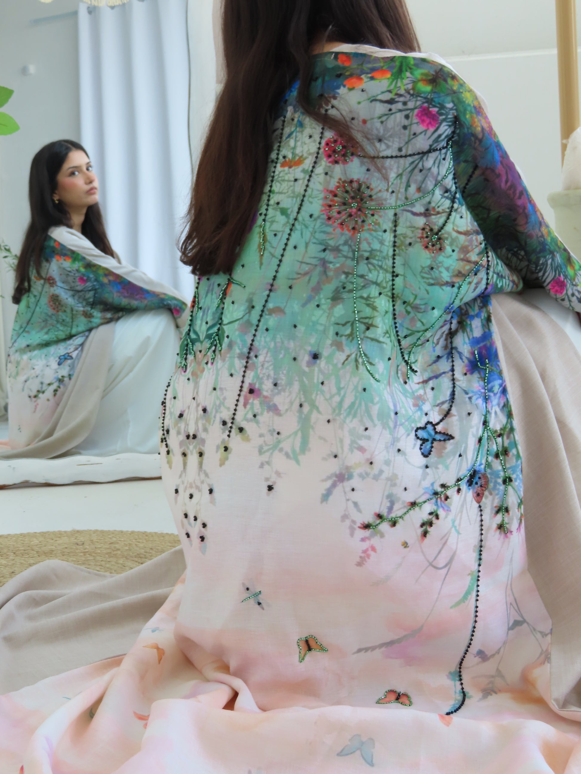Effortless elegance in watercolor tones, a 3-piece set where art meets modesty. Soft hues and delicate butterfly details come together for timeless style.